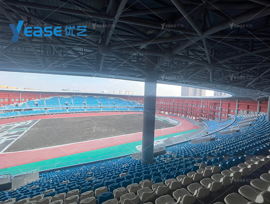 坚固耐用的钢结构看台系统,满足户外场馆长期使用与高承载要求。