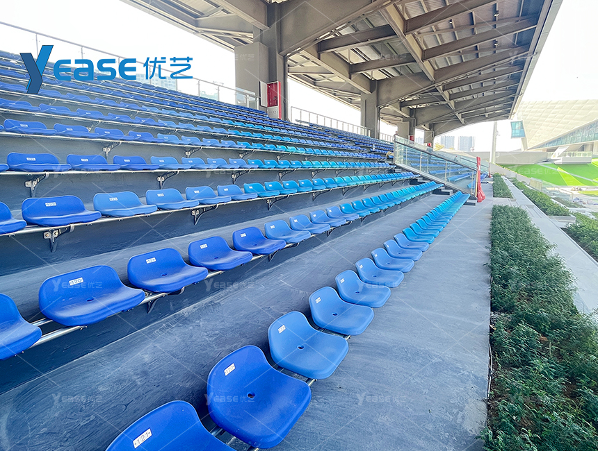 坚固耐用的钢结构看台系统,满足户外场馆长期使用与高承载要求。