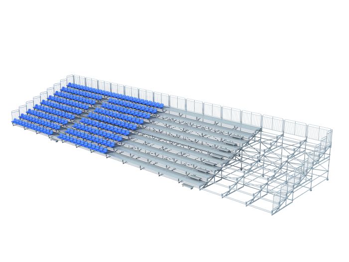 产品特点:看台由单元模块拼装而成,可横向、纵向增减模组以灵活满足各种场地需求,主要结构(支架)采用矩形管、圆管及法兰盘组焊而成,标准的支架、踏板、座椅、护栏、脚手架底盘,极大的简化了看台的安装、拆卸过程,场地适应性强,是临时的大型看台系统的绝佳选择。