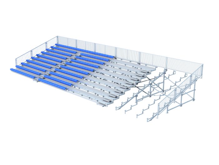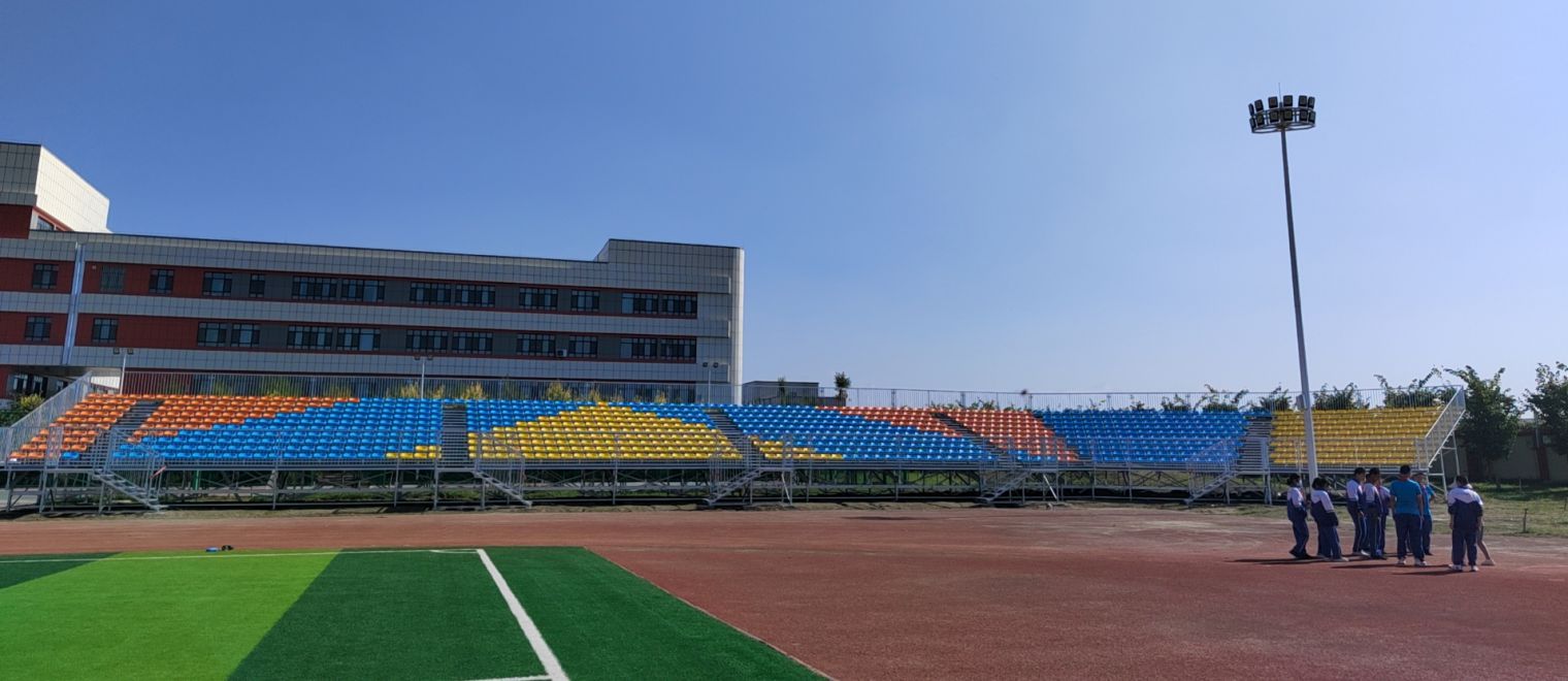 产品特点:主要结构(横梁、立柱)以矩形管组焊成型,搭配异型辊压背板及角钢副支撑,让看台在较大跨度的同时依然能保证结构的稳定性和牢靠性,看台技术成熟,是室内外长期使用的中型看台需求首选。